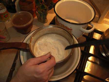 Тесто остужаем на балконе или в другом холодном месте до комнатной температуре или ниже. Чем ниже, тем лучше.
