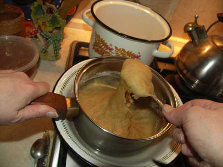 И, всё время помешивая, добавляем мёд.