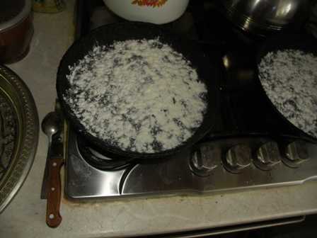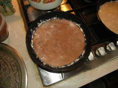 Выкладываем на сковородки.