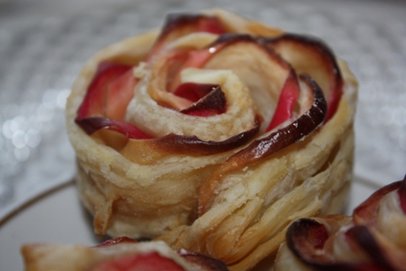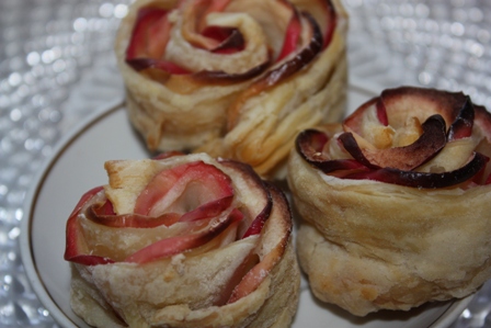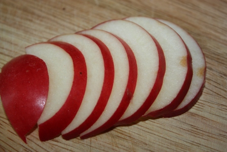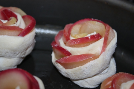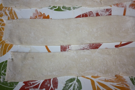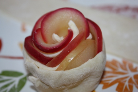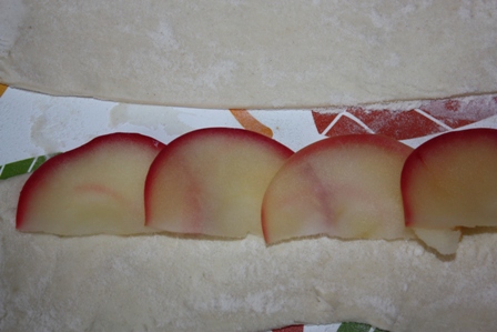 Выкладываем дольки яблок на полоски и аккуратно закручиваем.