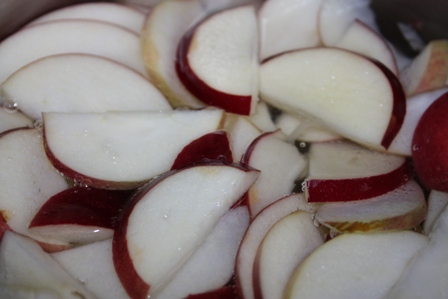 Заливаем их кипятком и добавляем немного сахара. Ждем, пока яблоки не станут мягкими.