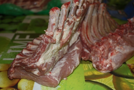 - мясо — свиная корейка на кости (корейка + грудинка) 2 части