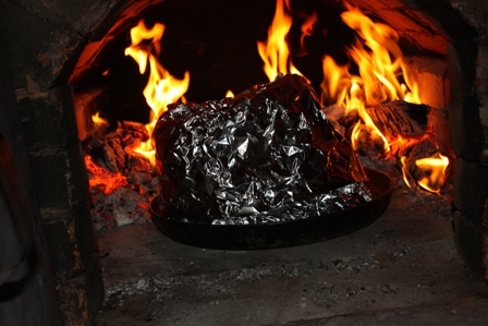 Заворачиваем в фольгу и ставим в печь (духовку) примерно на 1,5 часа.